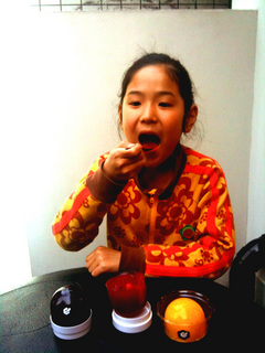 天狗ゼリーはゼラチンを使っていますが、子供カプセルには寒天を使用。
